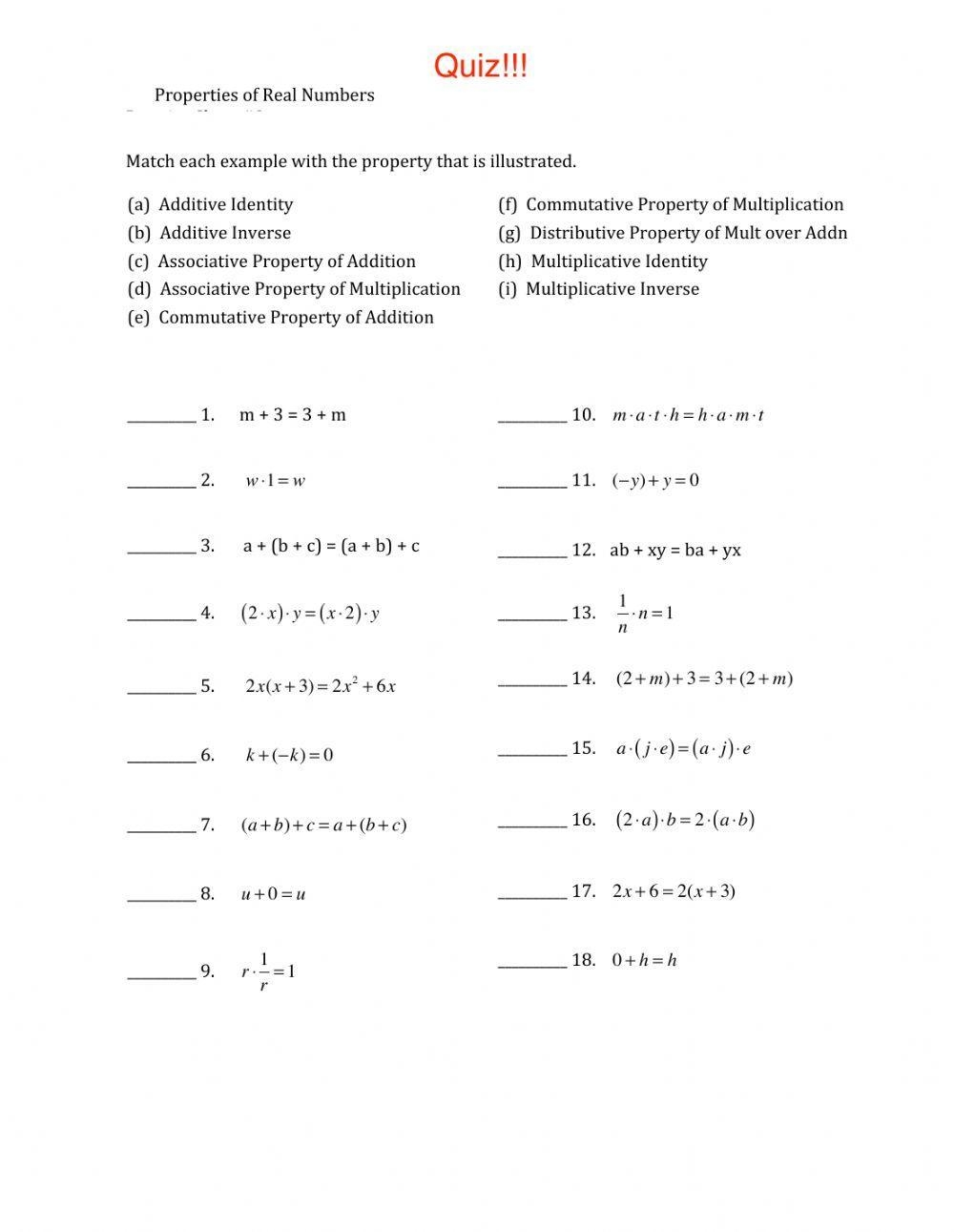 By understanding and applying these properties of real numbers, you can enhance your problem-solving skills and mathematical proficiency. Practice with worksheets like these can help reinforce your knowledge and prepare you for more advanced concepts in algebra and beyond.