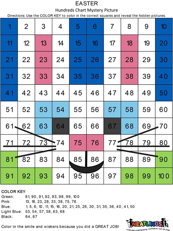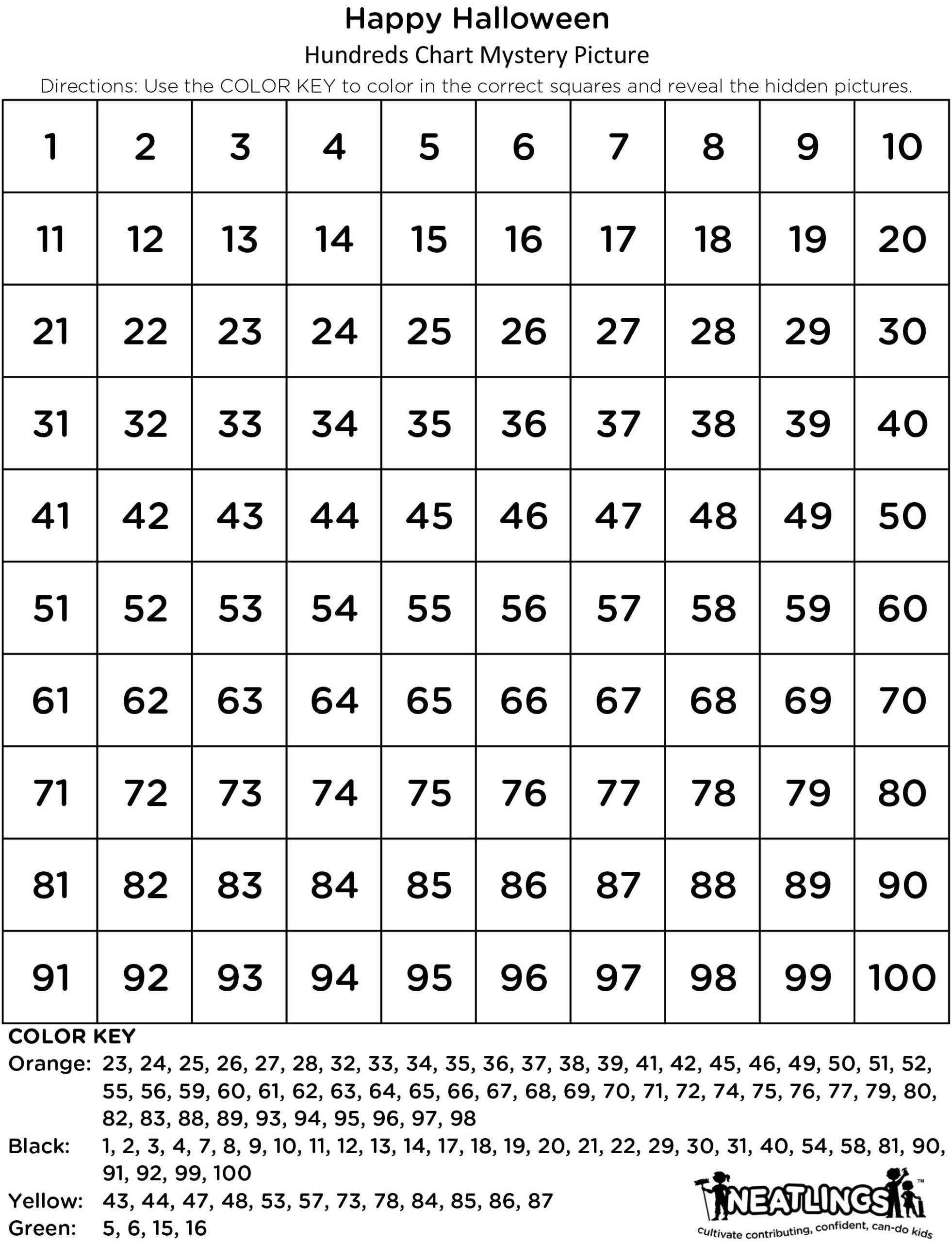 With the 100 chart mystery picture free printable, kids can work on their counting and number sequencing skills in a creative and interactive way. They will have to pay close attention to the numbers on the chart and use them to fill in the correct colors to uncover the hidden image.