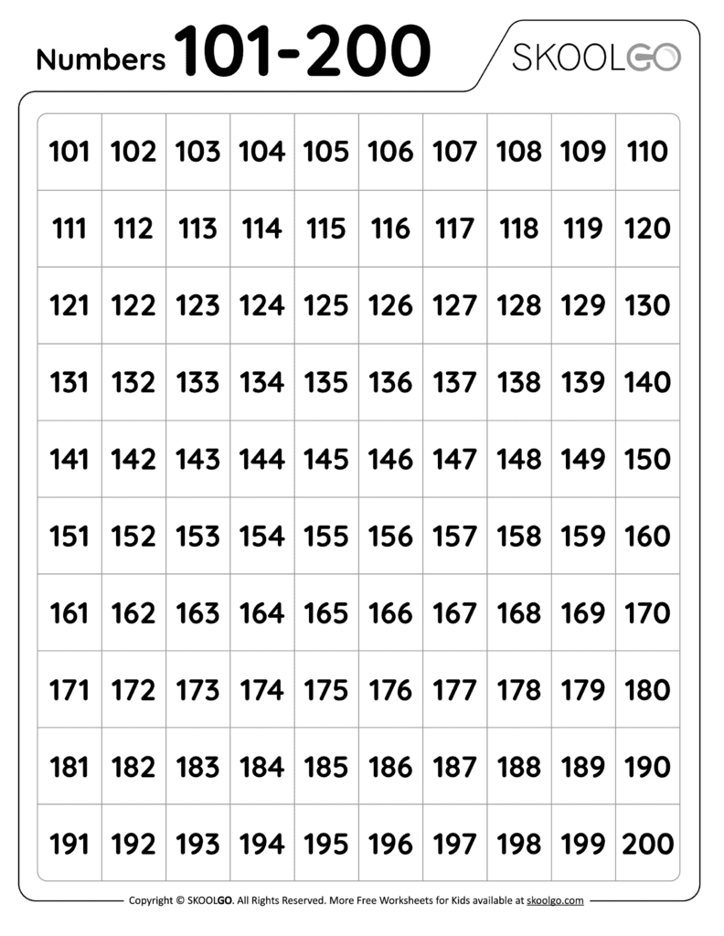 So why wait? Download the 101 to 200 numbers worksheet today and watch your students’ number skills soar to new heights!