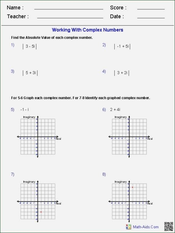 Absolute Value of Complex Numbers Worksheet