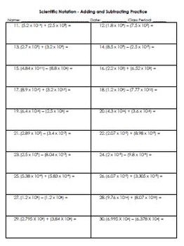 Scientific notation is a way of writing very large or very small numbers in a more concise form, making it easier to work with such numbers in calculations. One common operation that involves scientific notation is adding and subtracting numbers. This worksheet will help you practice these operations and improve your understanding of scientific notation.
