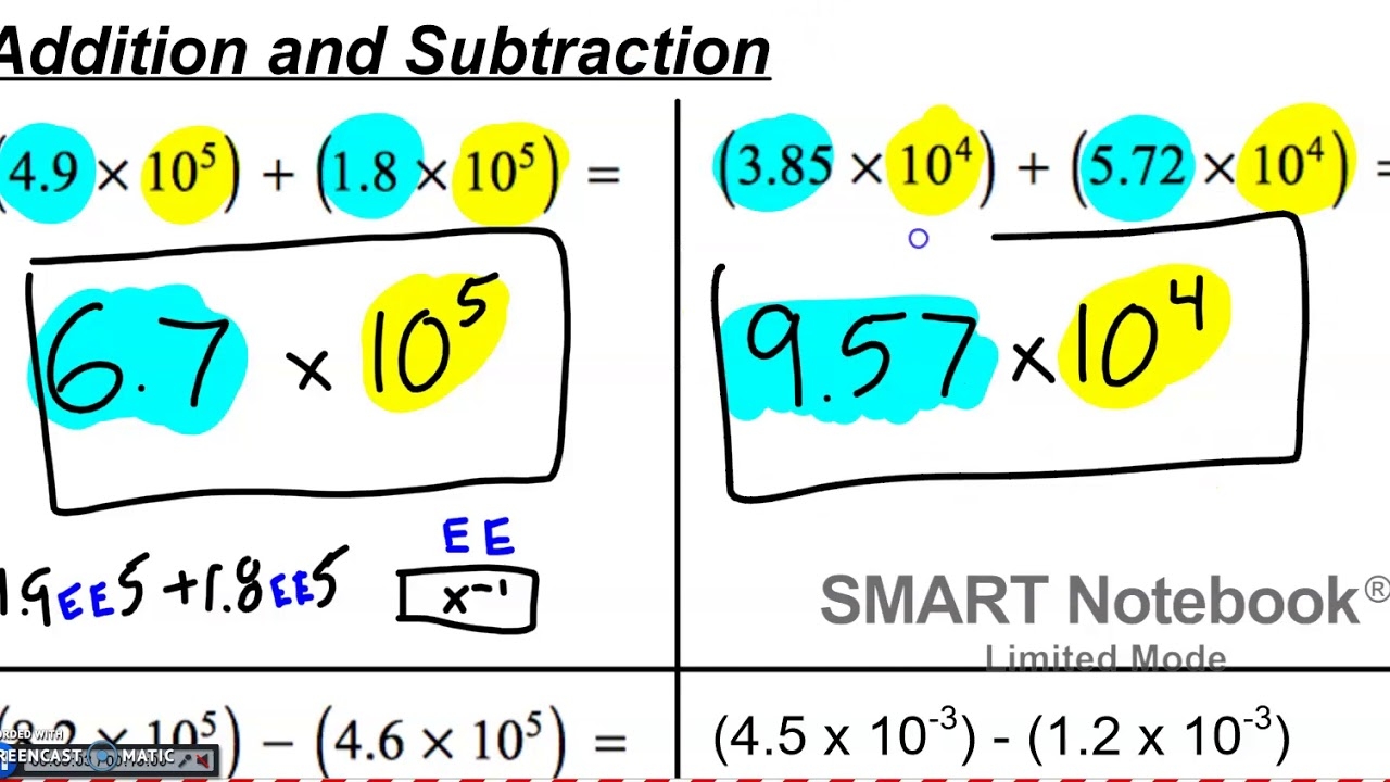 3. Add or subtract the coefficients of the numbers while keeping the power of 10 the same.