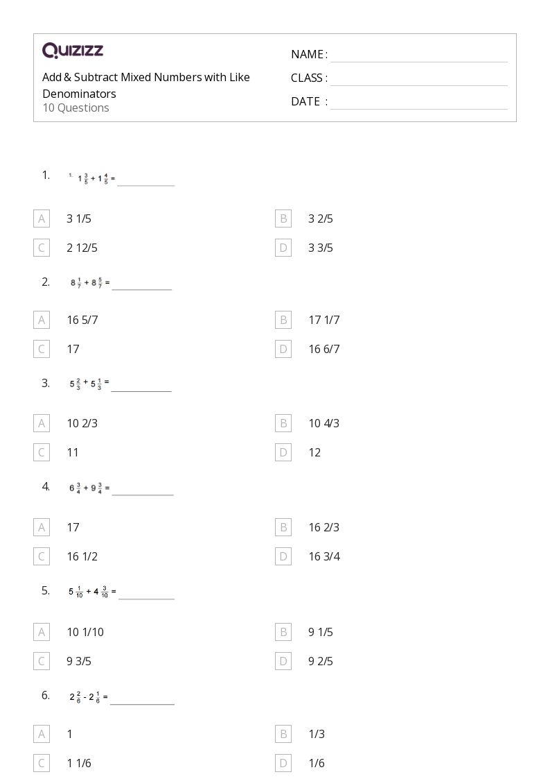 Students may also encounter problems that involve adding or subtracting mixed numbers. For example, they may need to find the sum of 2 1/2 + 3 3/4. To solve this, they would need to add the whole numbers, add the fractions, and simplify the resulting mixed number if necessary.