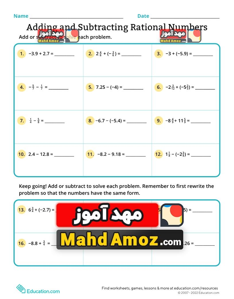 These worksheets typically include a mix of addition and subtraction problems involving fractions, decimals, and mixed numbers. By working through these problems, students can improve their understanding of how to add and subtract rational numbers effectively.