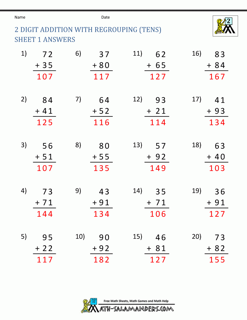 Whether used in the classroom or at home, these worksheets are a useful tool for reinforcing regrouping skills and preparing students for success in math. By incorporating these worksheets into their practice routine, students can improve their ability to add two-digit numbers with regrouping and build a strong foundation for future math learning.