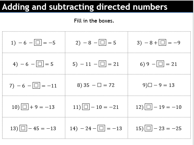 A worksheet focused on adding and subtracting directed numbers can help students practice and improve their skills in this area. It provides them with the opportunity to work on different problems, understand the rules, and gain confidence in their abilities to manipulate directed numbers.