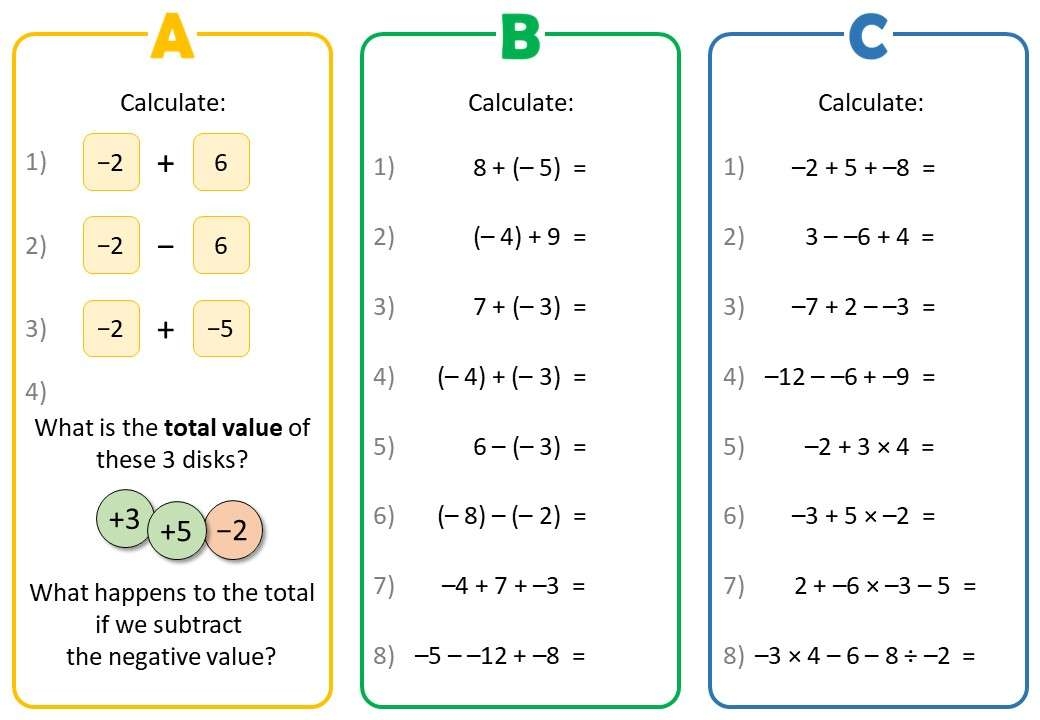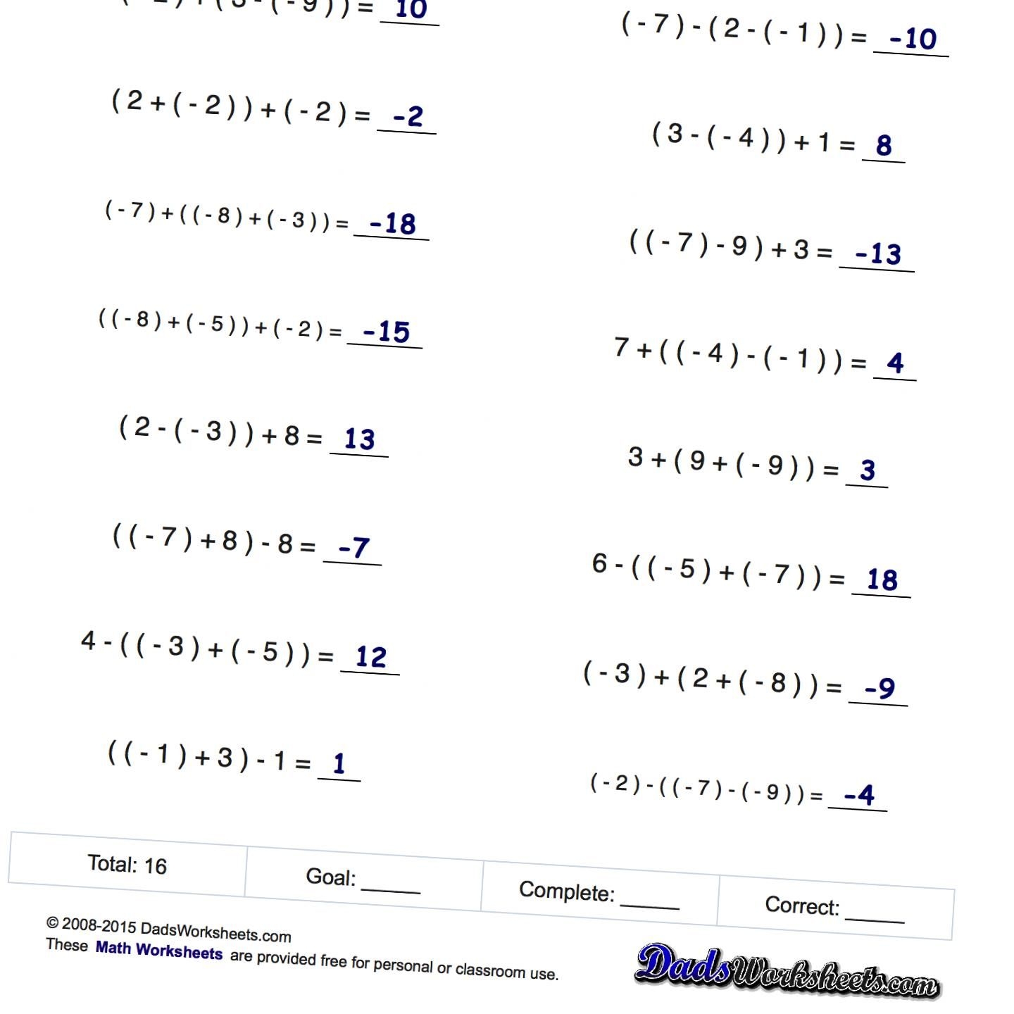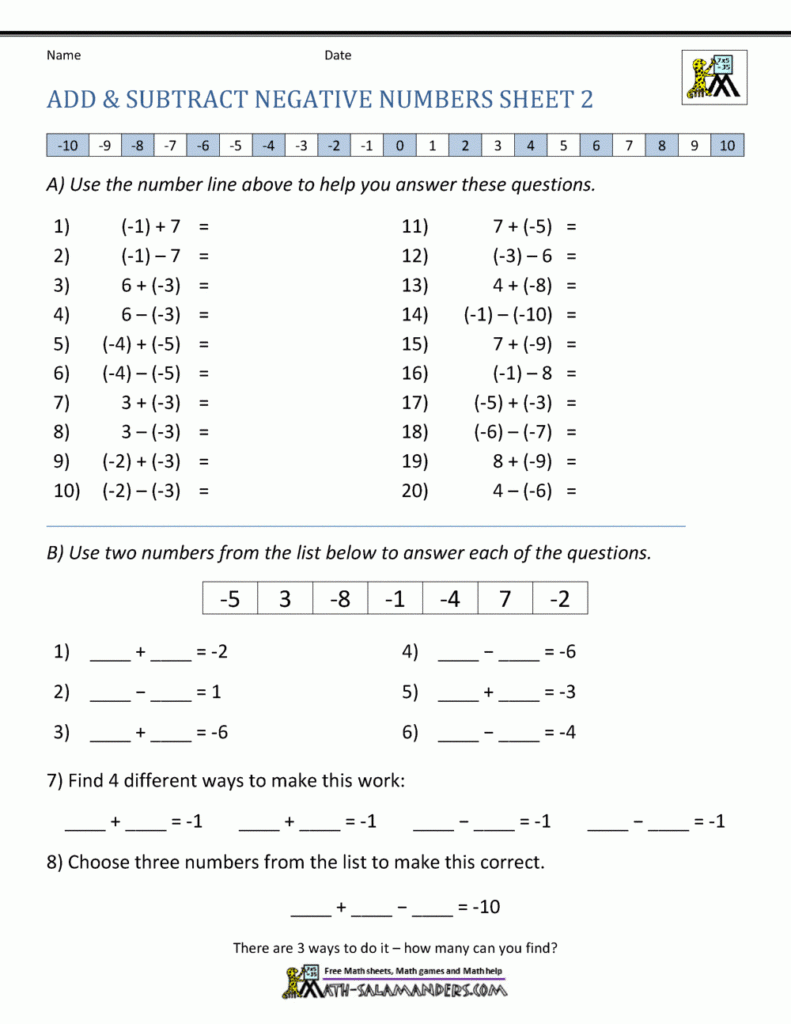 The worksheet may include a mix of addition and subtraction problems, ranging from simple to more complex ones. It can cover various scenarios, such as adding two negative numbers, subtracting a positive number from a negative number, or adding and subtracting numbers with different signs. By working through these exercises, students can build their proficiency and fluency in handling directed numbers.