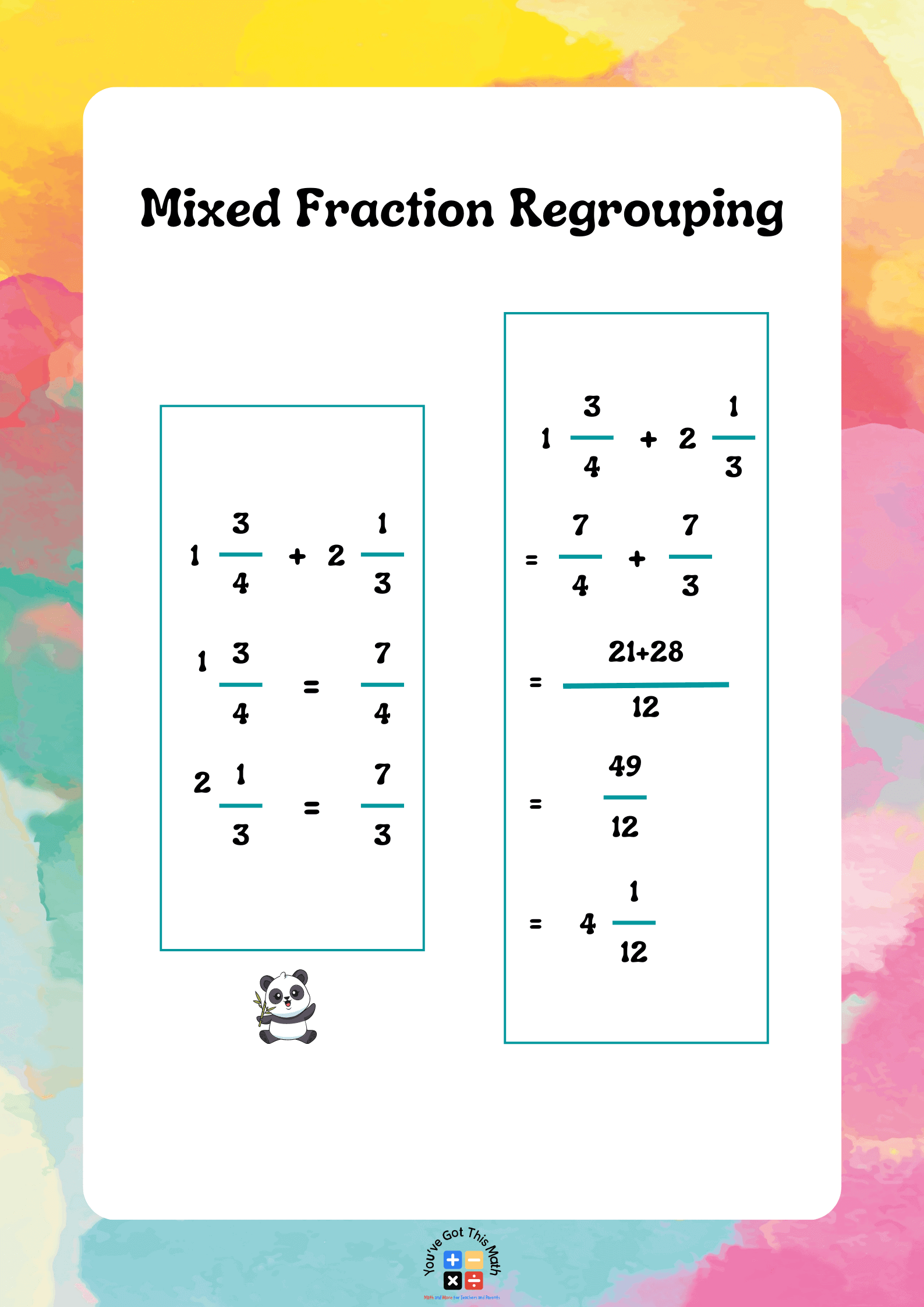 Using worksheets to practice adding and subtracting mixed numbers with regrouping can help students build confidence and proficiency in this area. By providing structured practice and immediate feedback, worksheets can support students in mastering this complex skill. Teachers can also use worksheets to assess student understanding and tailor instruction to meet individual needs.