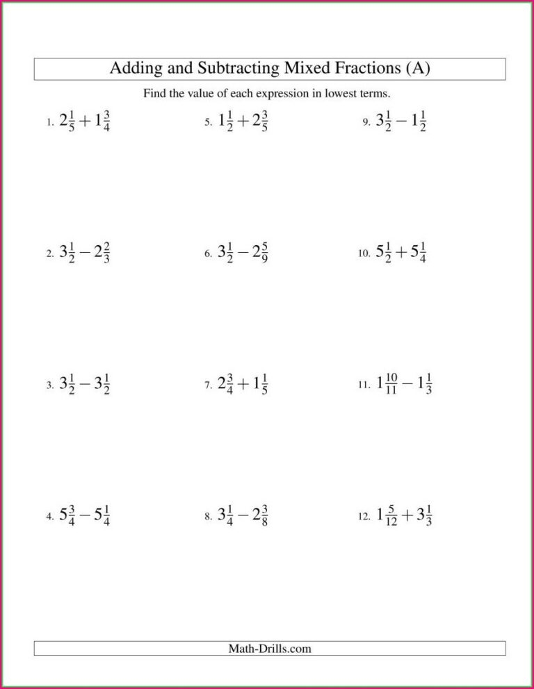 When it comes to 7th grade math, one of the key skills students need to master is adding and subtracting mixed numbers. These types of problems involve both whole numbers and fractions, making them a bit more challenging than simple addition and subtraction problems. To help students practice and improve their skills, teachers often provide worksheets with a variety of problems to solve.
