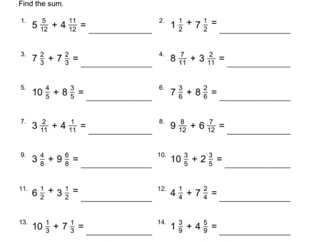 By providing students with adding mixed numbers worksheets, teachers can offer a hands-on approach to learning that allows students to practice and apply their knowledge in a structured manner. These worksheets can be used in the classroom or as homework assignments to reinforce the concepts taught in class.