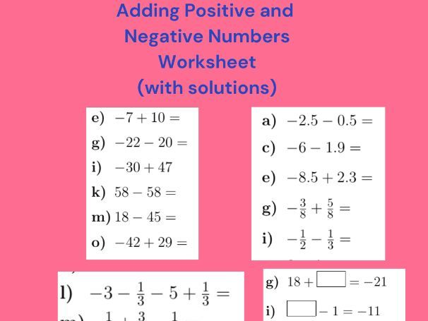 Adding negative and positive numbers can be a challenging concept for students to grasp. It is important for them to understand the rules and techniques involved in adding numbers of different signs. One way to practice and reinforce this skill is through worksheets that provide various problems for students to solve.