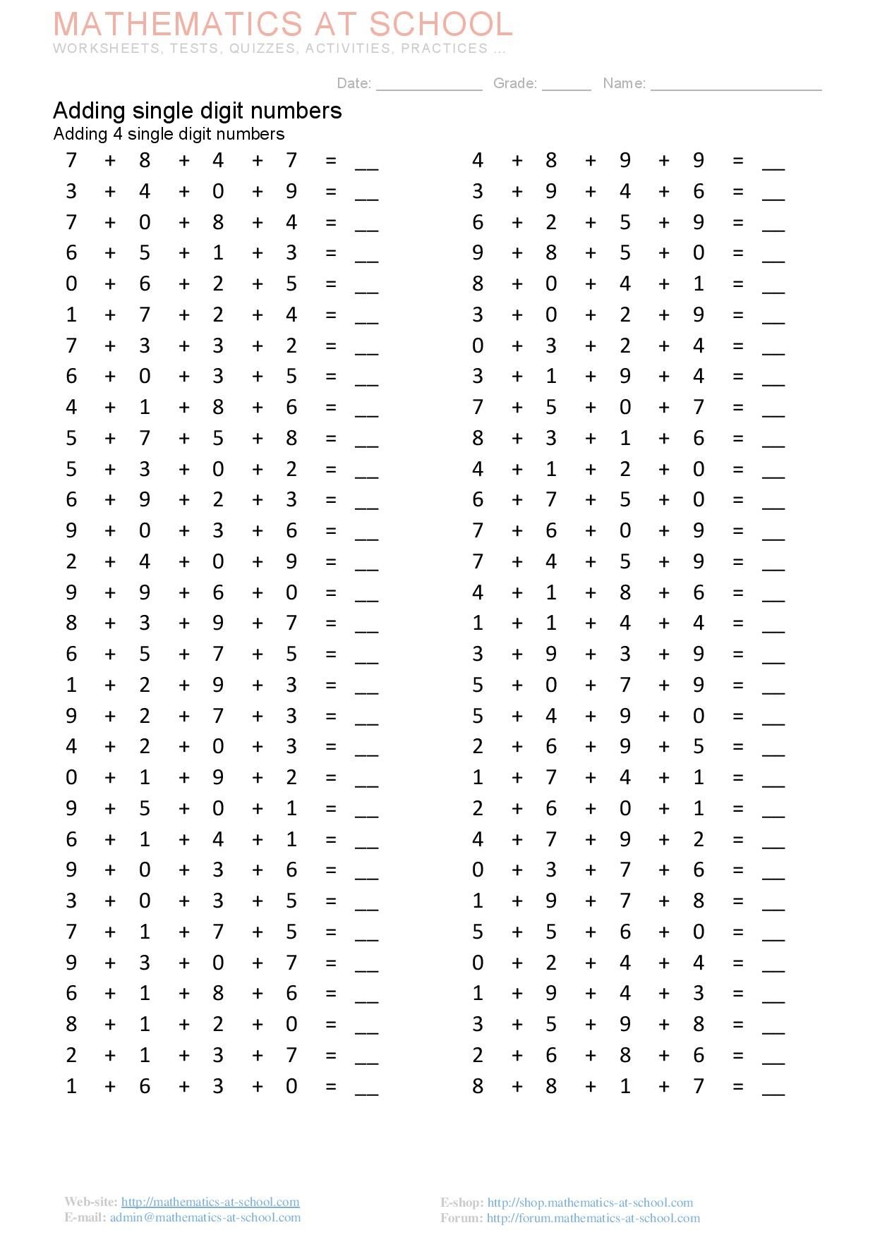 By providing students with a variety of worksheets that focus on adding single digit numbers, teachers can help students build a strong foundation in mathematics that will serve them well as they progress to more advanced concepts.
