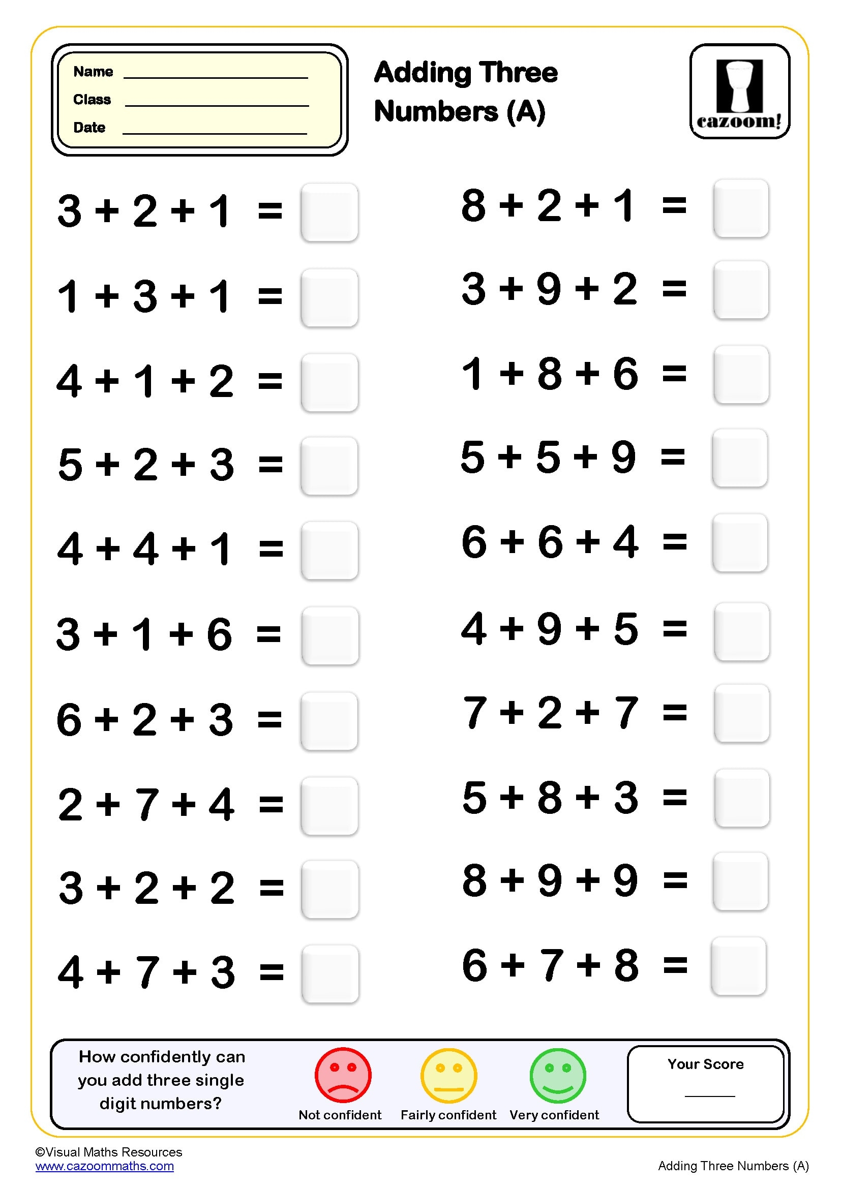 In conclusion, adding three numbers worksheets are a useful tool for students to practice and reinforce their addition skills. By providing opportunities for repeated practice, targeted support, and engaging activities, these worksheets can help students become more proficient in adding three numbers together. Incorporating these worksheets into math instruction can benefit students by improving their math abilities and fostering a positive attitude towards learning.