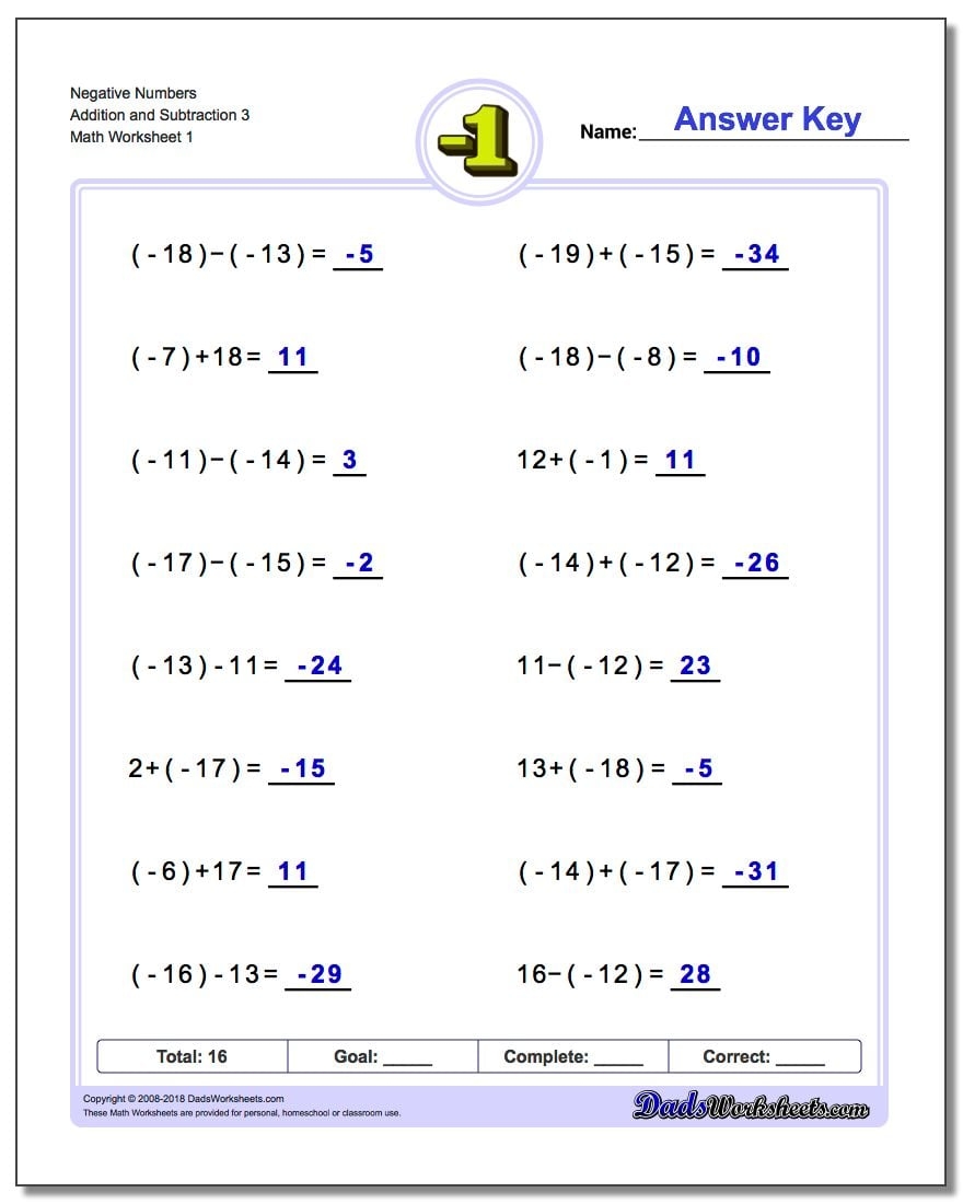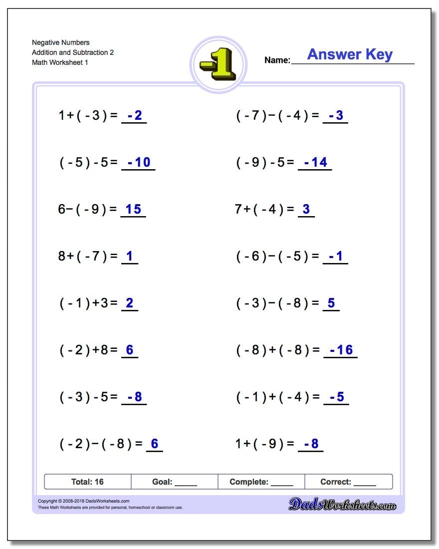Download and Print addition and subtraction negative numbers worksheets Listed below
