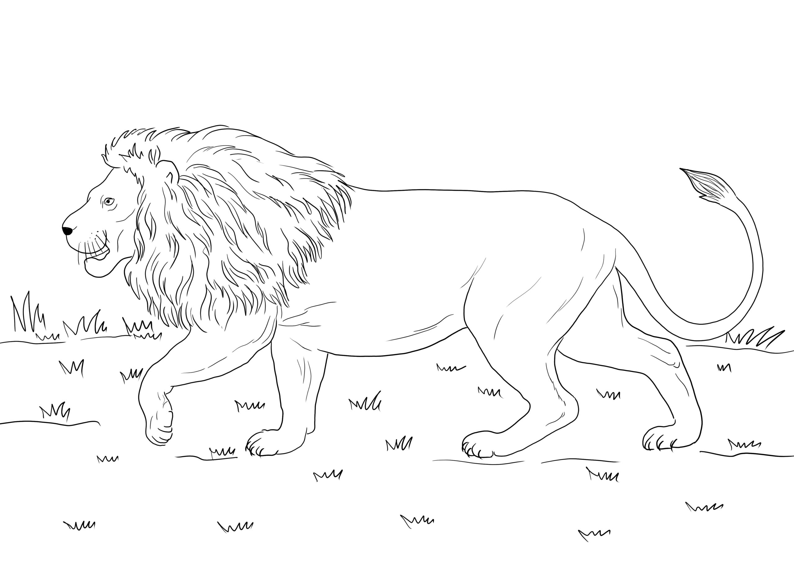 Realistic Walking African Lion Coloring Page ColoringBay