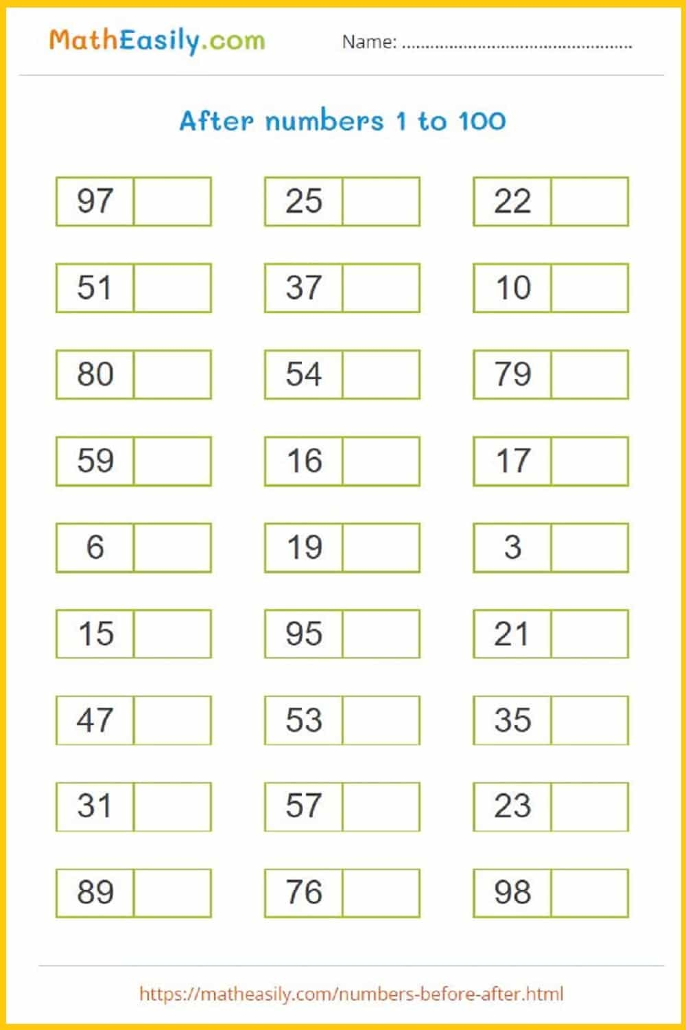Additionally, these worksheets can also help children improve their number sense and fluency. By repeatedly practicing identifying the numbers that come before and after a given number, students can become more confident in their ability to work with numbers and develop a deeper understanding of numerical relationships.