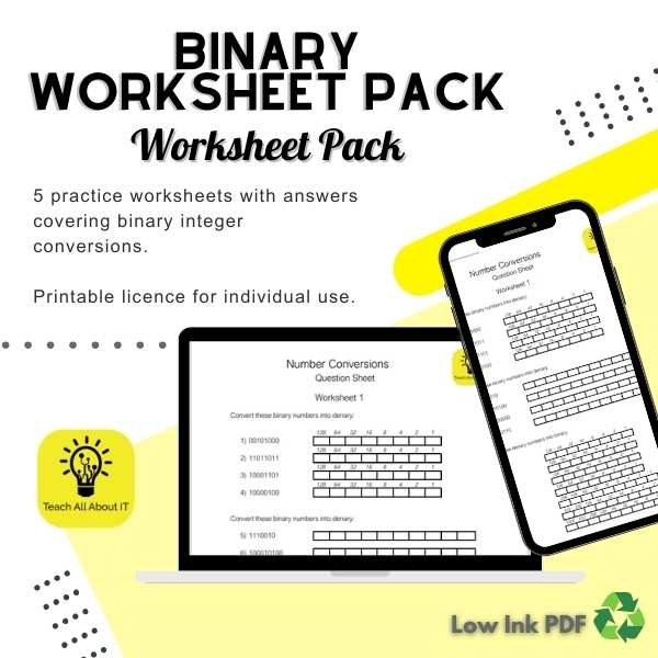 The binary numbers worksheet will include a variety of problems for students to solve. These may include converting decimal numbers to binary numbers, converting binary numbers to decimal numbers, adding and subtracting binary numbers, multiplying and dividing binary numbers, and more. The worksheet will also include explanations and examples to help students understand the concepts behind binary numbers and how they are used in computing.