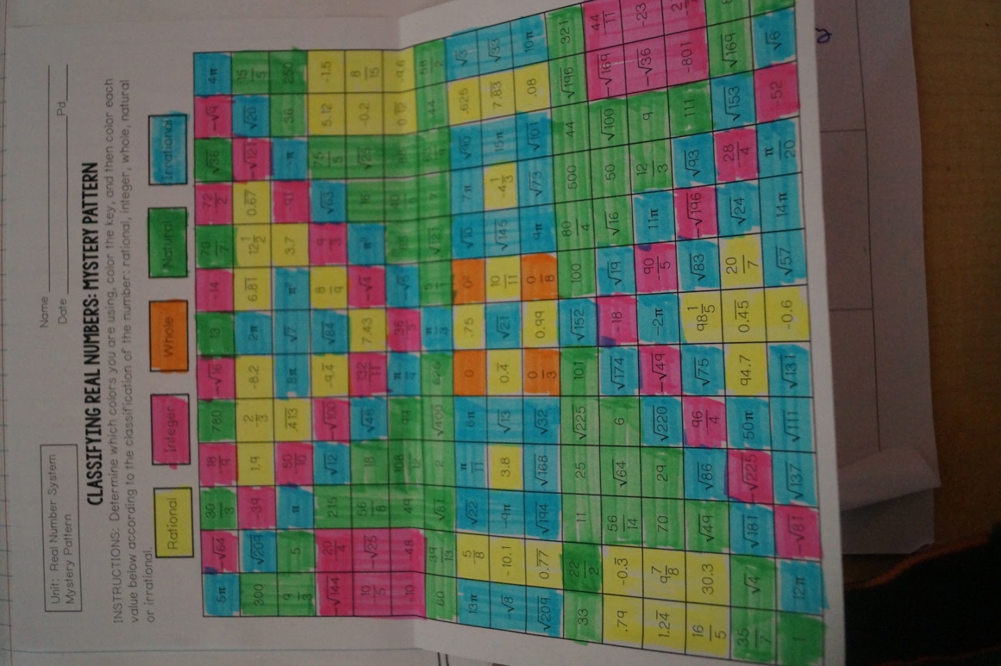 Classifying Real Numbers Mystery Pattern Worksheet Answer Key