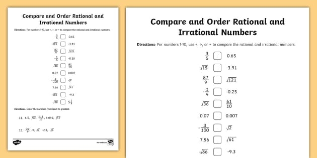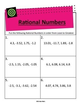 A compare and order rational numbers worksheet is a tool used by students to practice comparing and ordering rational numbers. This worksheet typically includes a variety of problems that require students to compare two or more rational numbers and arrange them in ascending or descending order.
