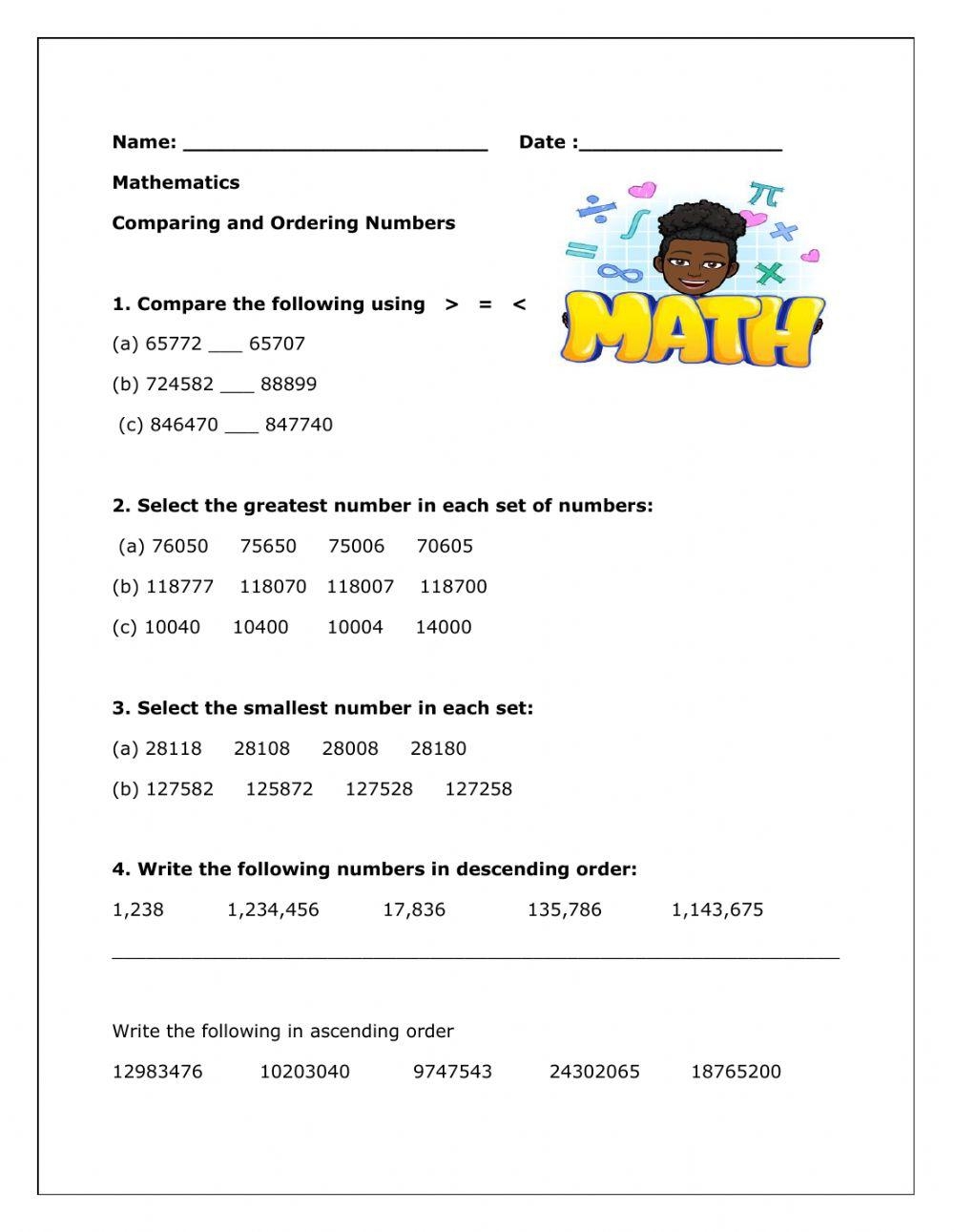 In conclusion, comparing and ordering numbers worksheets are valuable resources for both teachers and students. These worksheets help students improve their number sense, critical thinking skills, and mathematical abilities. By incorporating these worksheets into lessons, teachers can enhance their students’ understanding of numerical relationships and provide them with the necessary skills to succeed in math.
