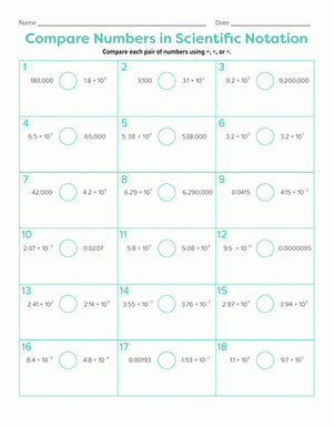 Understanding how to compare numbers in scientific notation is essential for various fields such as physics, chemistry, and engineering. Whether dealing with distances in space, atomic sizes, or electrical currents, being able to compare numbers in scientific notation accurately is crucial. This worksheet will provide students with the practice they need to become proficient in this skill.