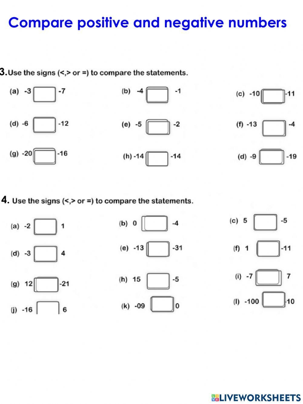 Positive and negative numbers are essential components of mathematics and are used in various real-life situations. Understanding how to compare these numbers is crucial for solving mathematical problems and making informed decisions. Worksheets that focus on comparing positive and negative numbers can help students build a solid foundation in this area and improve their overall mathematical abilities.