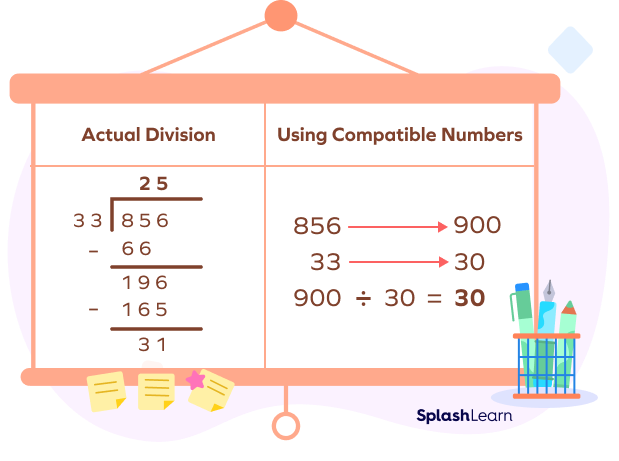 Compatible numbers are numbers that are easy to work with mentally when performing math operations. They are usually numbers that are close to each other and can be easily manipulated to make calculations simpler. One common use of compatible numbers is in estimation, where you can round numbers to make calculations easier and quicker.