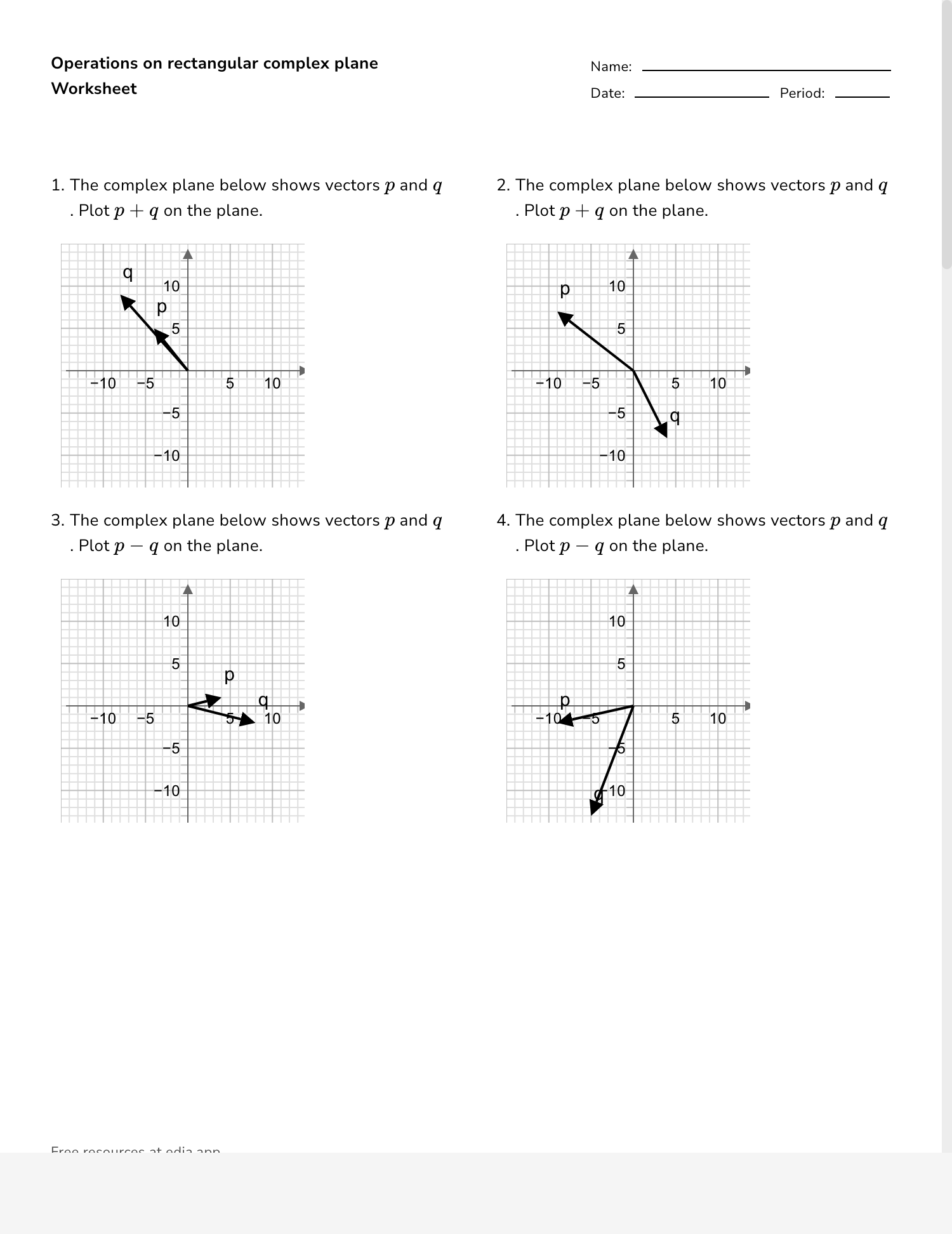 A complex numbers worksheet is a valuable tool for practicing and mastering the concepts related to complex numbers. It typically consists of a series of problems that require students to perform operations such as addition, subtraction, multiplication, and division of complex numbers. These worksheets also include questions on finding the modulus, conjugate, and argument of complex numbers.