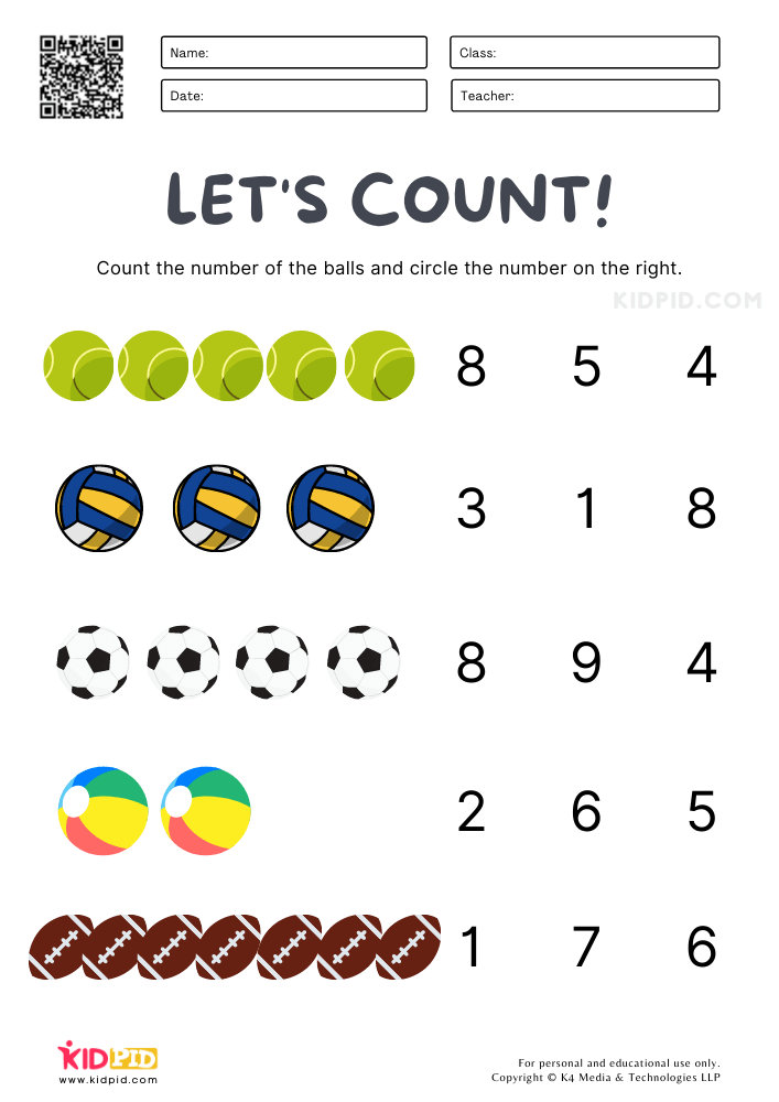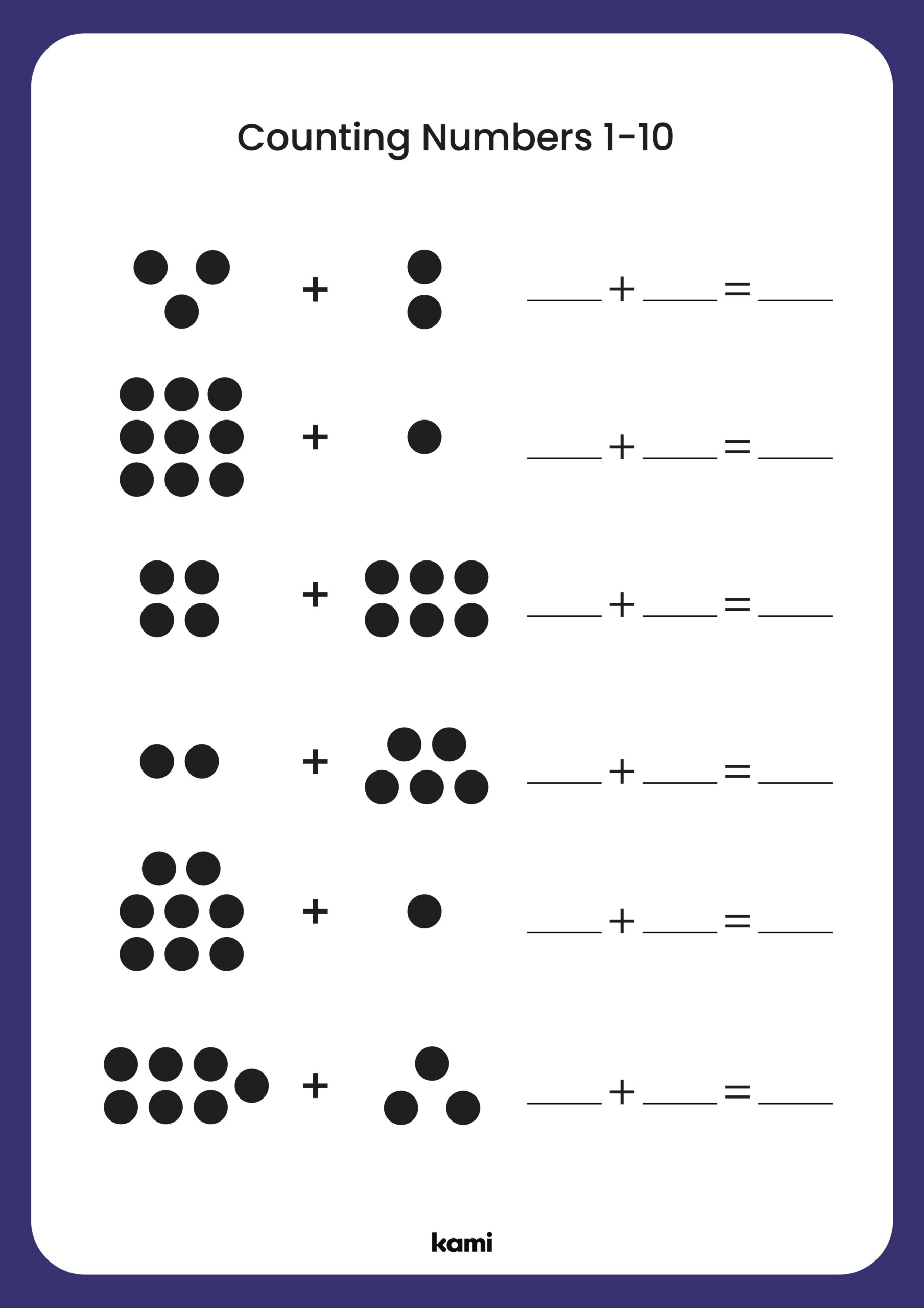 Another type of counting numbers worksheet involves matching numbers to quantities. In these worksheets, children are presented with a set of objects and are asked to match each object to the correct number. This activity helps children develop their one-to-one correspondence skills and reinforces their understanding of the relationship between numbers and quantities. It also helps them practice counting in a more abstract way, without the need for physical objects to count.