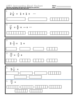 These worksheets often include visual aids such as number lines or fraction bars to help students visualize the process of decomposing mixed numbers. This hands-on approach can make the concept more concrete and easier for students to grasp.
