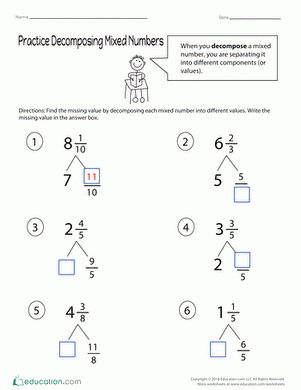 One way to practice decomposing mixed numbers is through worksheets. These worksheets typically include a variety of problems where students are required to decompose mixed numbers into their components. This helps them develop their problem-solving skills and gain confidence in working with fractions.
