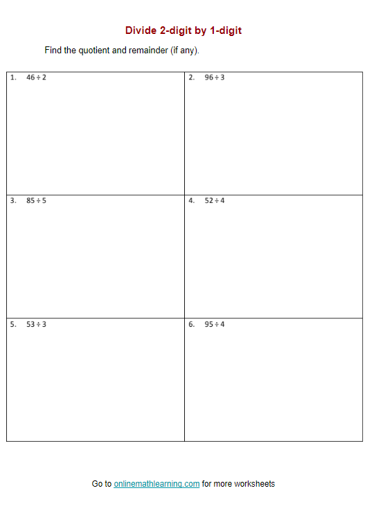 Additionally, divide by 1-digit numbers worksheets can be tailored to suit the needs of individual students. Teachers can create worksheets that cater to different skill levels and provide extra practice for students who may be struggling with division. This personalized approach helps students build confidence and improve their division abilities.
