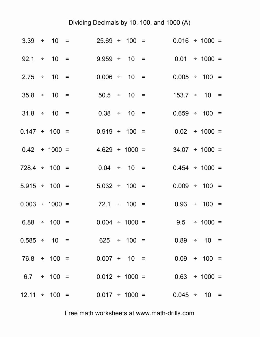 When it comes to learning and practicing math skills, worksheets are a valuable tool for students. They provide a structured way for students to practice various math problems and concepts. One important math concept that students often struggle with is dividing decimals by whole numbers. This particular skill requires a good understanding of decimal place value and basic division principles.