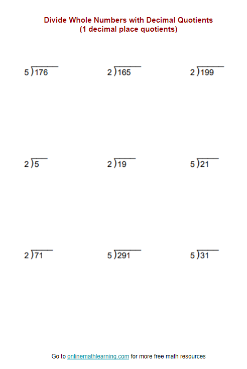 In addition to long division problems, dividing multi-digit numbers worksheets may also include problems that involve dividing decimal numbers or dividing numbers with remainders. These types of problems help students develop a deeper understanding of division concepts and how they can be applied in real-world situations.