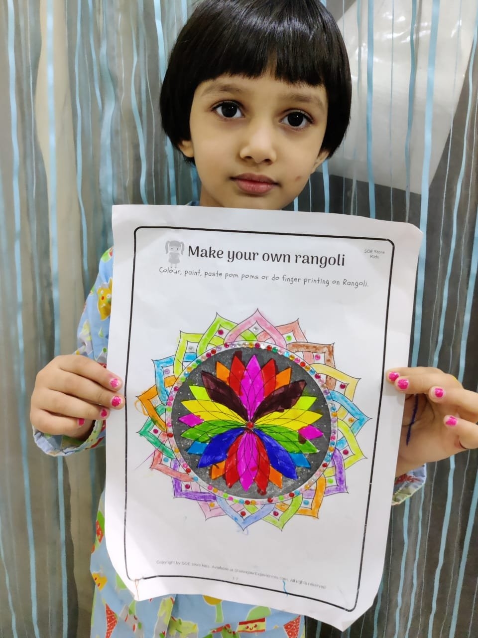 One popular way to use Diwali printable pictures is to create a beautiful rangoli design. Rangoli is a decorative art form where patterns are created on the floor using colored powders, rice, or flower petals. You can use printed rangoli designs as templates to recreate intricate patterns at your doorstep or in your home. This adds a traditional and festive touch to your decorations.