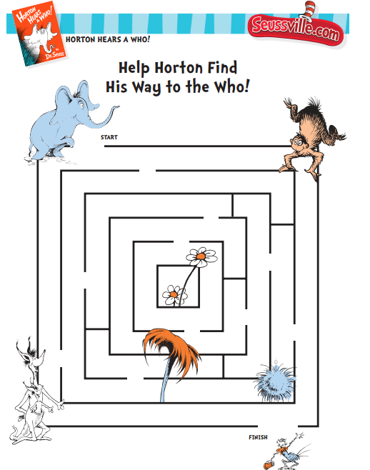 3. Mazes: Get lost in the world of Dr. Seuss with maze activities that will have you guiding characters like Sam-I-Am through twists and turns to reach their destination. It’s a great way to work on problem-solving skills while having fun!