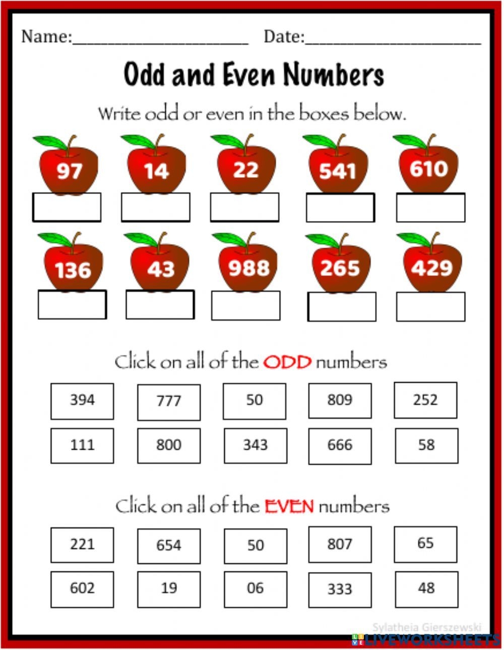 Odd Even Numbers Interactive Worksheet Live Worksheets Worksheets