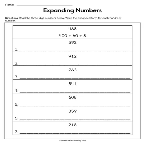 Furthermore, expanding numbers worksheets can be a valuable resource for teachers in assessing student progress. By reviewing the completed worksheets, teachers can gauge the level of understanding and proficiency of each student. This information can be used to inform instruction, identify areas for improvement, and provide targeted support to students who may be struggling. Overall, expanding numbers worksheets serve as a useful tool for both students and teachers in the learning process.