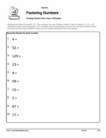 One common type of exercise found in factoring numbers worksheets is prime factorization. In this type of problem, students are given a number and are asked to find all of its prime factors. This can be done through trial and error, or by using methods such as the factor tree or division method. By practicing prime factorization through worksheets, students can become more proficient at quickly identifying prime factors and factoring numbers efficiently.