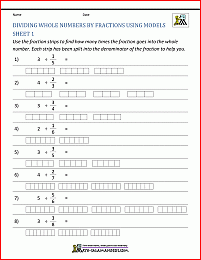 Fractions Divided by Whole Numbers Worksheet