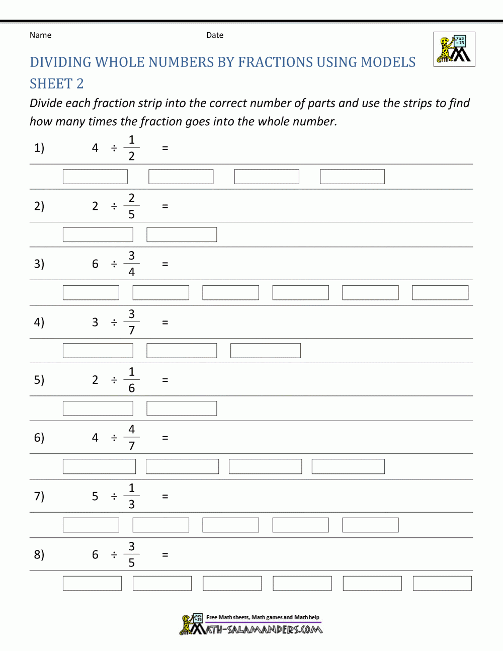 By regularly practicing fractions divided by whole numbers worksheets, students can improve their problem-solving skills, critical thinking abilities, and confidence in math. These worksheets provide a structured and systematic approach to learning, allowing students to track their progress and identify areas where they need additional help or practice.