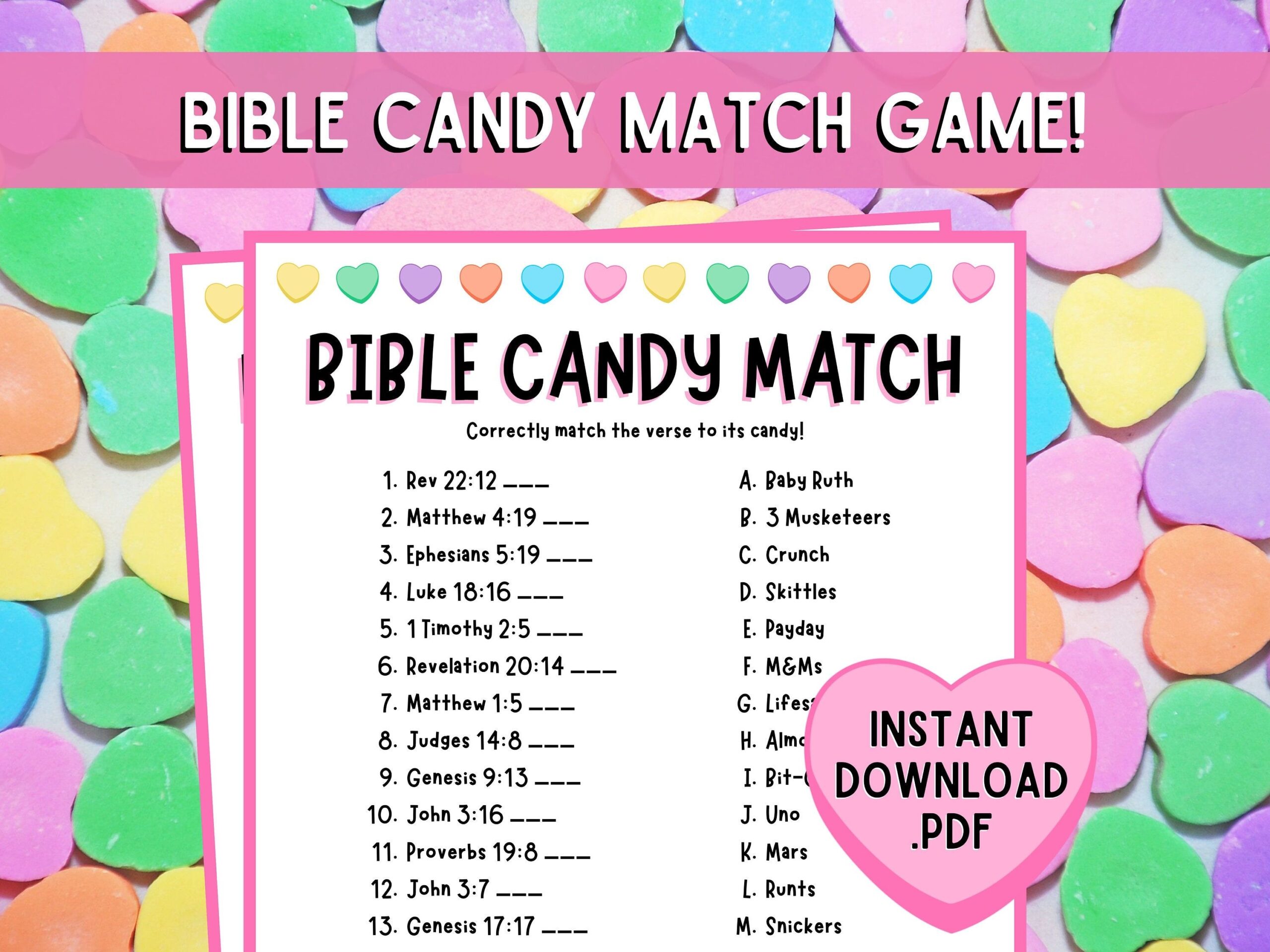 Print out the game cards, cut them out, and then shuffle them to create a fun matching game. Children can take turns flipping over two cards at a time, trying to find the matching sweethearts. It’s a simple yet entertaining activity that will keep kids engaged and excited about learning more about the Bible.