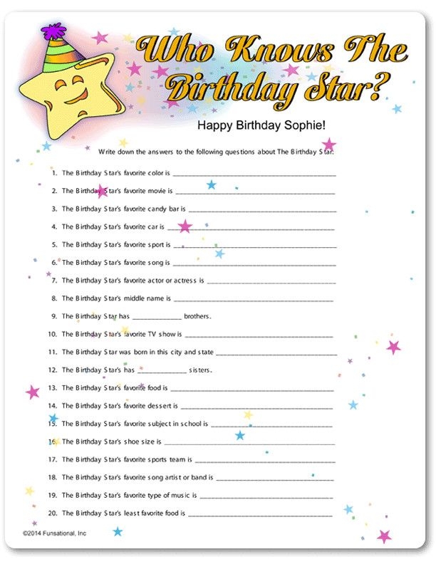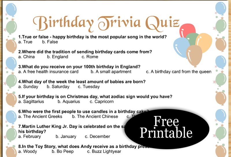 Free Printable Birthday Party Trivia Games