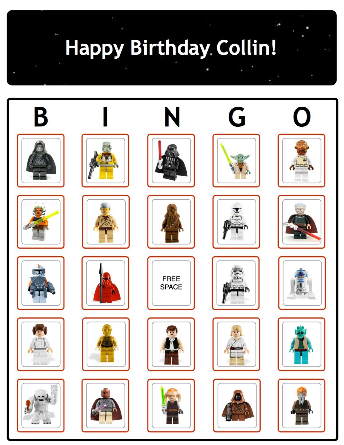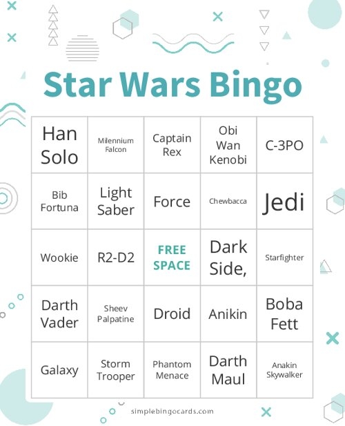 Free Printable Birthday Star Wars Bingo Games