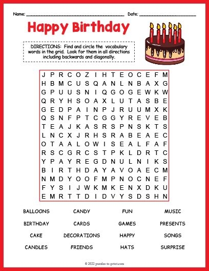 Word search games are a great way to challenge the minds of your guests while also providing a fun and interactive activity. With birthday-themed word searches, you can add a personalized touch to the party and make it even more memorable for everyone involved.