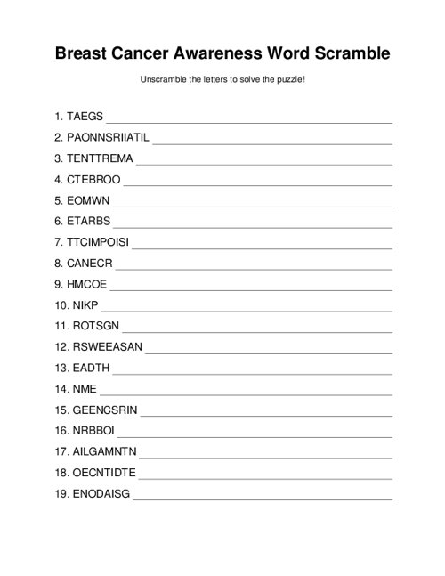 One creative way to support breast cancer awareness is by incorporating printable games into your events. These games not only entertain participants but also help raise awareness about the importance of breast health. Here are some free printable breast cancer awareness games that you can use at your next event: