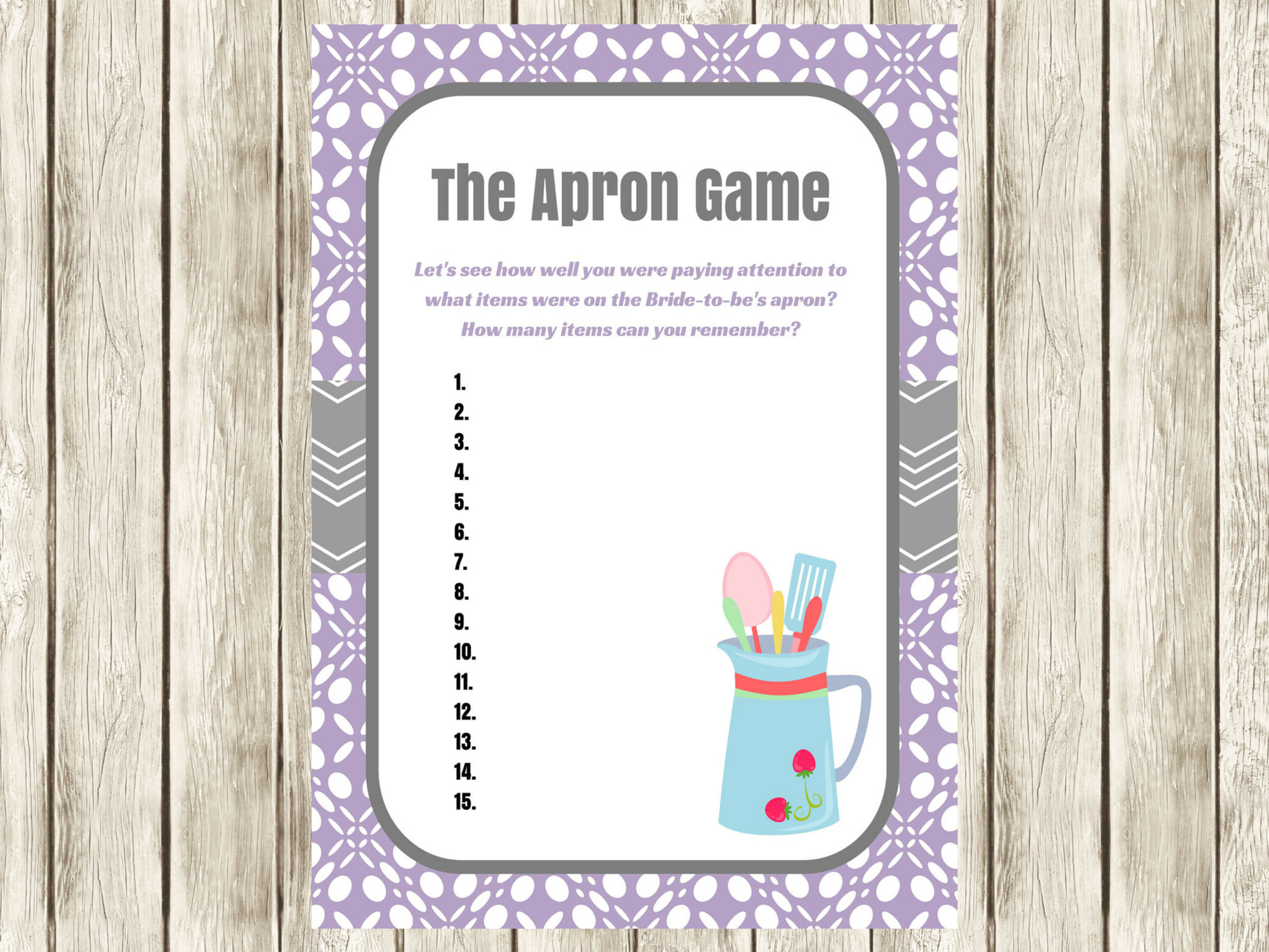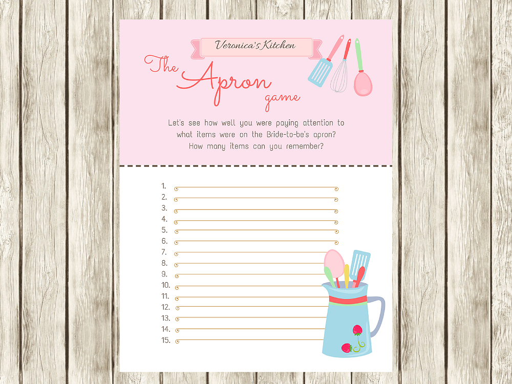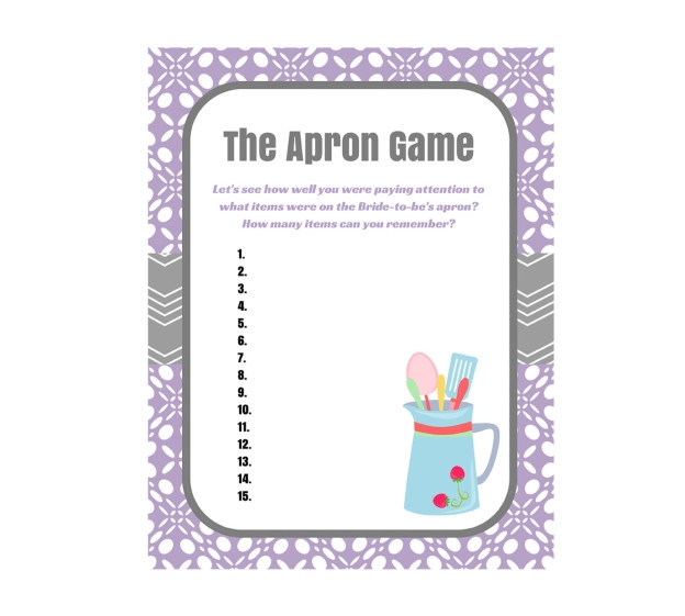 Free Printable Bridal Shower Apron Game