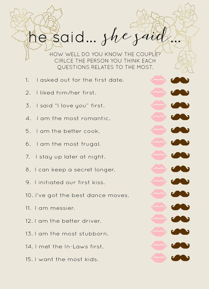 Are you in charge of planning a bridal shower and looking for a fun and interactive game to play with the guests? Look no further than the He Said She Said game! This game is perfect for breaking the ice and getting everyone involved in the celebration.