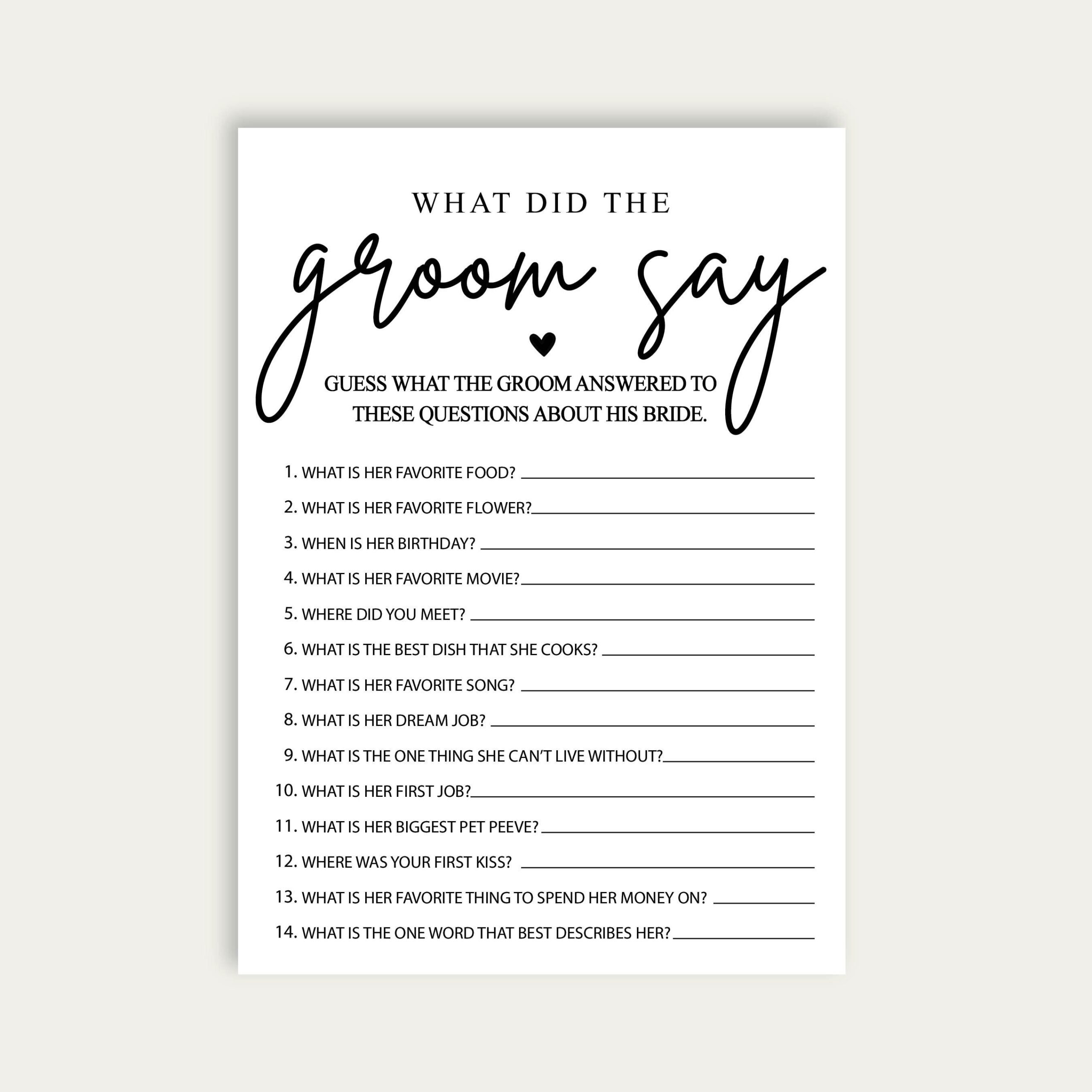 Are you hosting a bridal shower and looking for a fun and entertaining game to play with the guests? Look no further than the “What Did the Groom Say” game! This game is sure to bring lots of laughter and joy as guests try to guess the answers given by the groom.