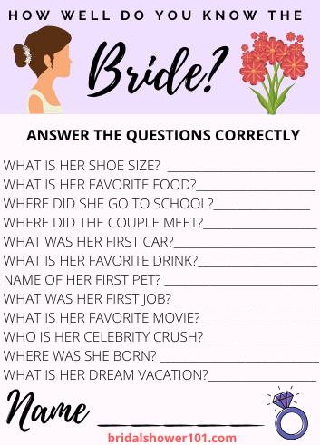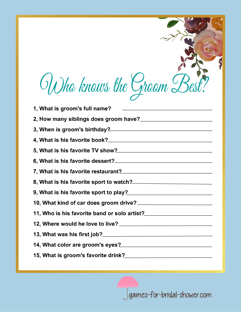 Before the bridal shower, the maid of honor or bridesmaids can ask the groom a series of questions about the bride. These questions can range from simple facts about the bride’s favorite food to more personal questions about their relationship. The answers given by the groom are then compiled into a list to be used during the game.
